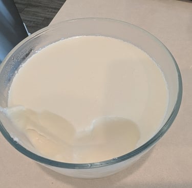 1. Boil milk to 200F and mix in the inulin while hot (to sterilize both). Inulin helps make the yogurt creamy and leaves enough food for the Reuteri up to 36 hours. Here's what I use (Link), or potato starch (Link) if you are allergic to inulin.